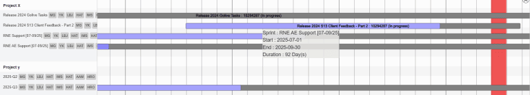 - Les diagrammes GANTT Scrum of Scrum rendent la gestion de plusieurs équipes Agile intuitive et visuelle.