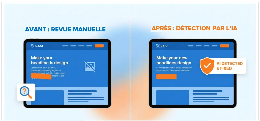 ➡️ Résultat : Les problèmes visuels sont détectés tard, entraînent des reprises coûteuses et nuisent à la confiance des utilisateurs.